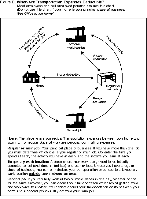 Figure B. When Are Local Transportation Expenses Deductible?TAs for Figure B are: Reg 1.162-1(a); RR 55–109; RR 94–47
