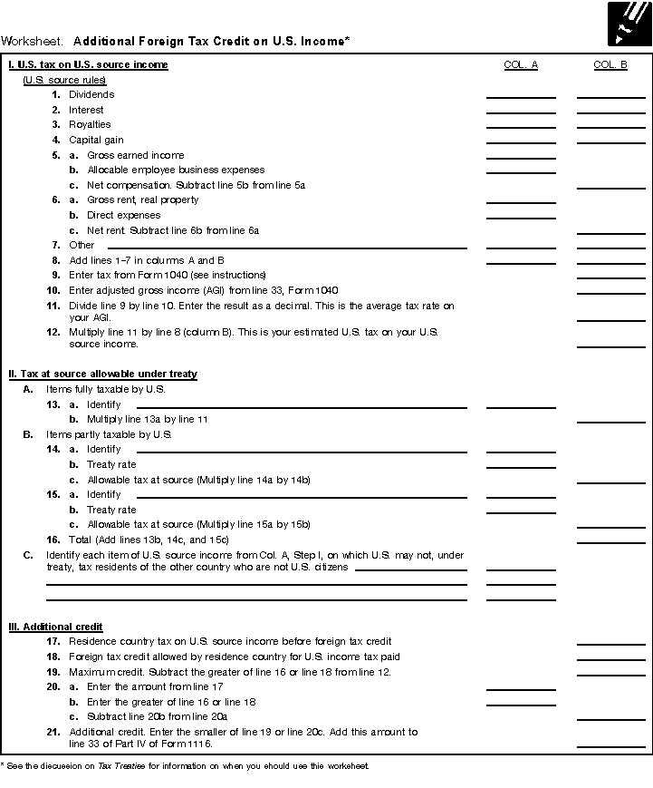 Worksheet Instructions. Additional Foreign Tax Credit on U.S. Income