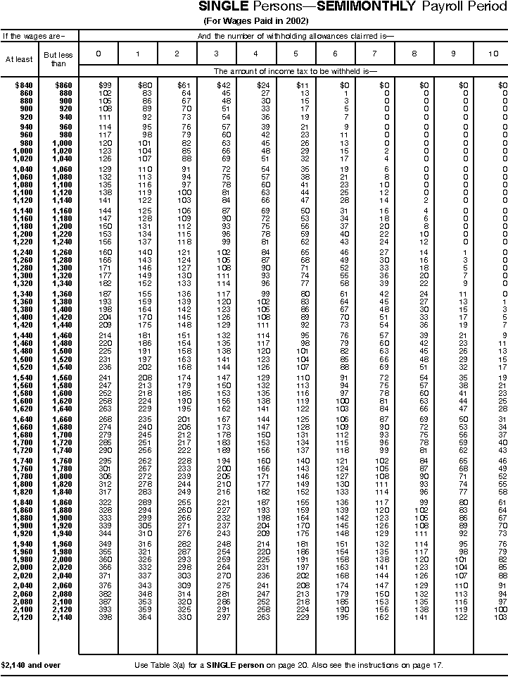 (Including 2002 Wage Withholding and Advance Earned Income Credit Payment Tables)