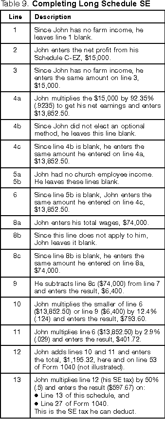 Table 9. Completing Long Schedule SE