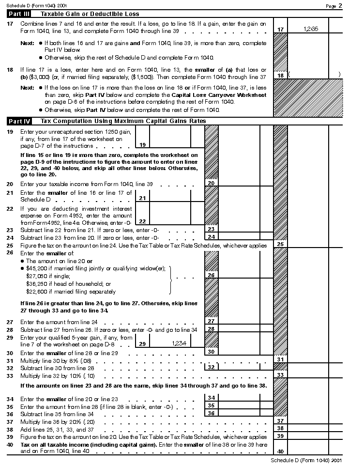 Comprehensive ExampleRobert and Janice Martin have the following four sources of investment income to report on their 2001 tax return. Their Schedules B and D (Form 1040) are shown later.