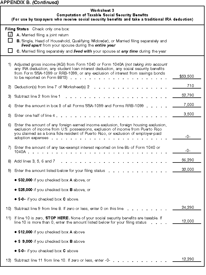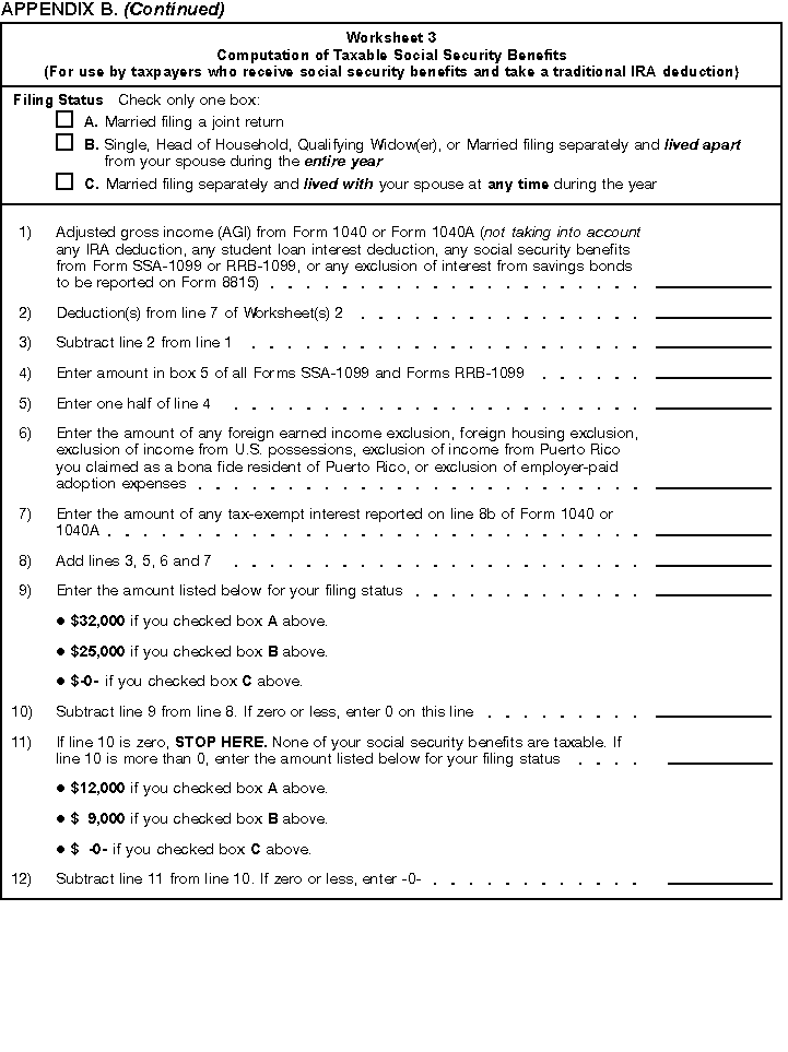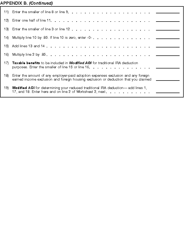 - Appendix B -- Worksheets you use if you receive social security benefits and are subject to the IRA deduction phaseout