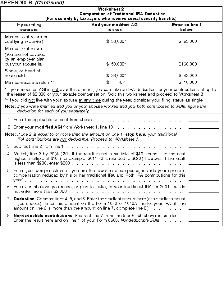 - Worksheet 2, Computation of Traditional IRA Deduction.