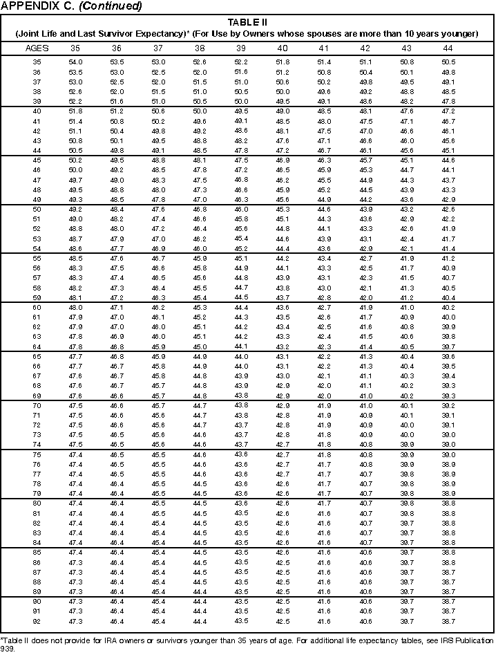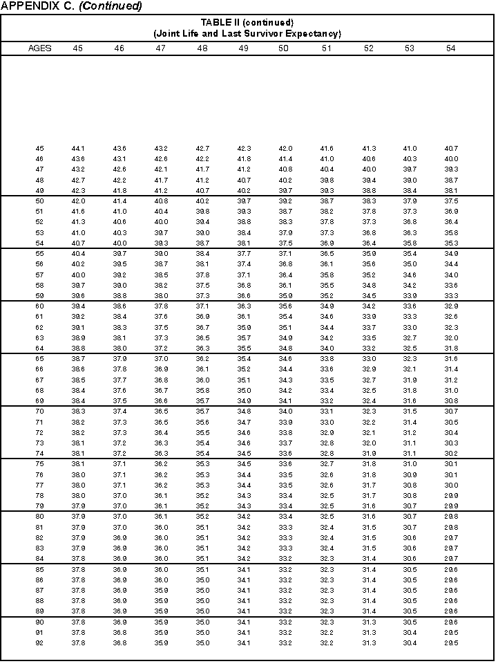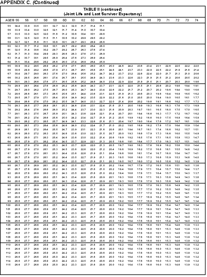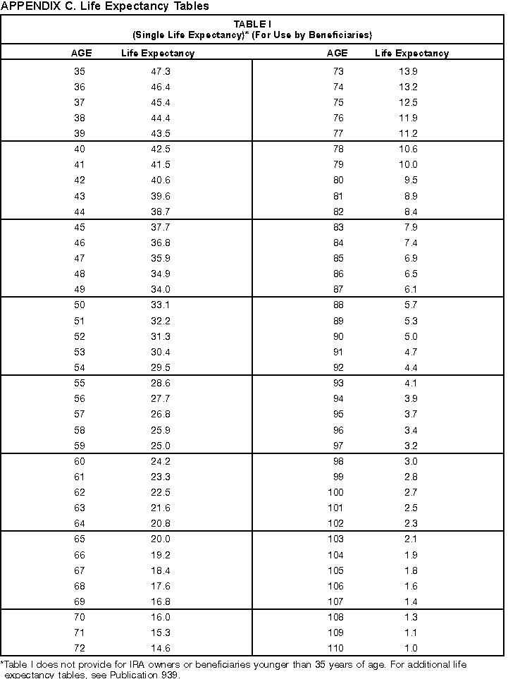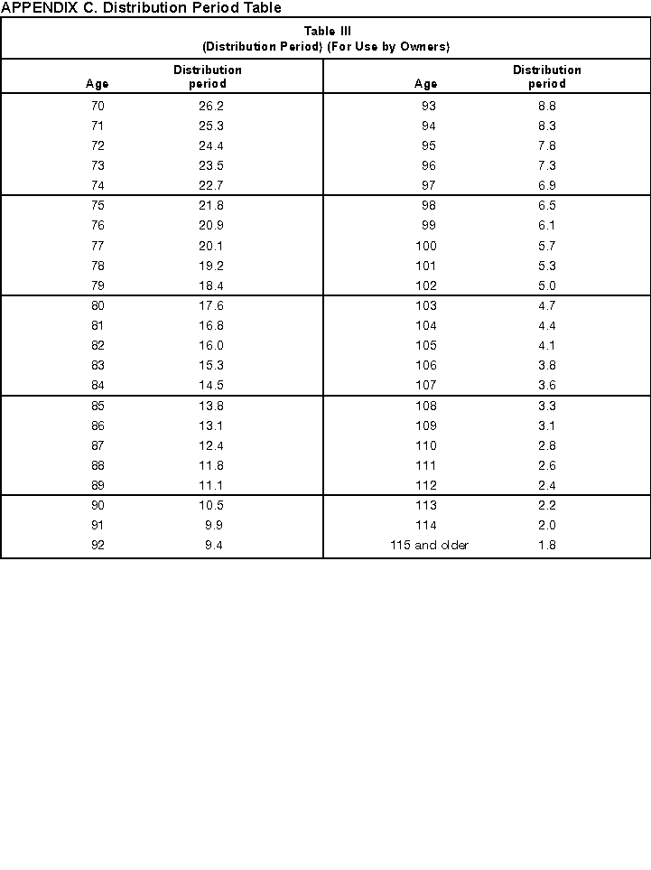 - Appendix C -- Life Expectancy and Distribution Period Tables. These tables are included to assist you in