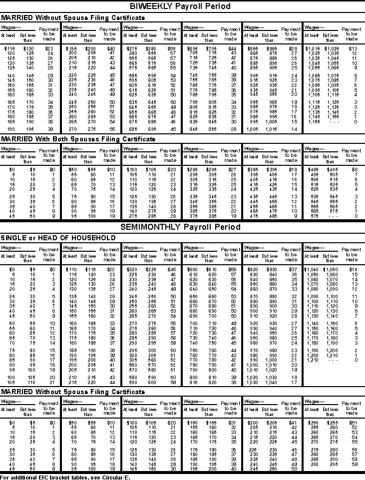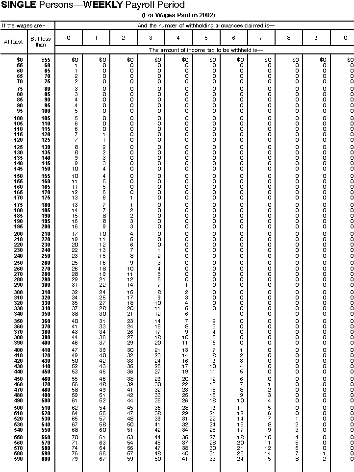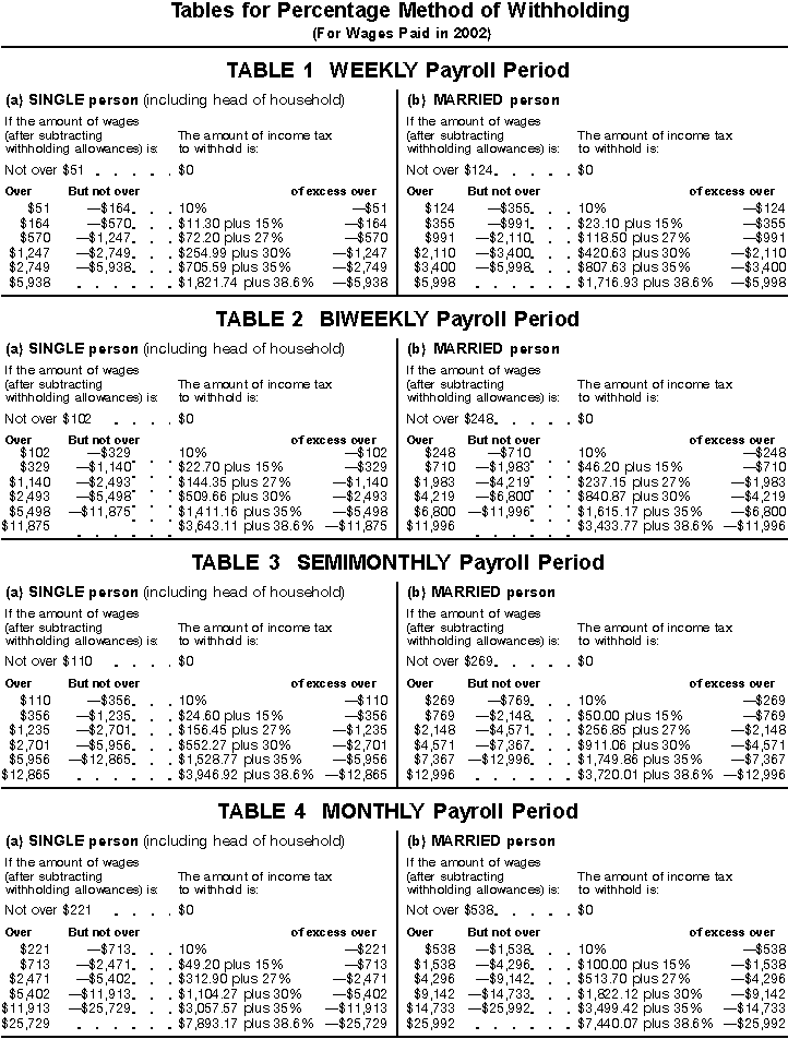 (Including 2002 Wage Withholding and Advance Earned Income Credit Payment Tables)