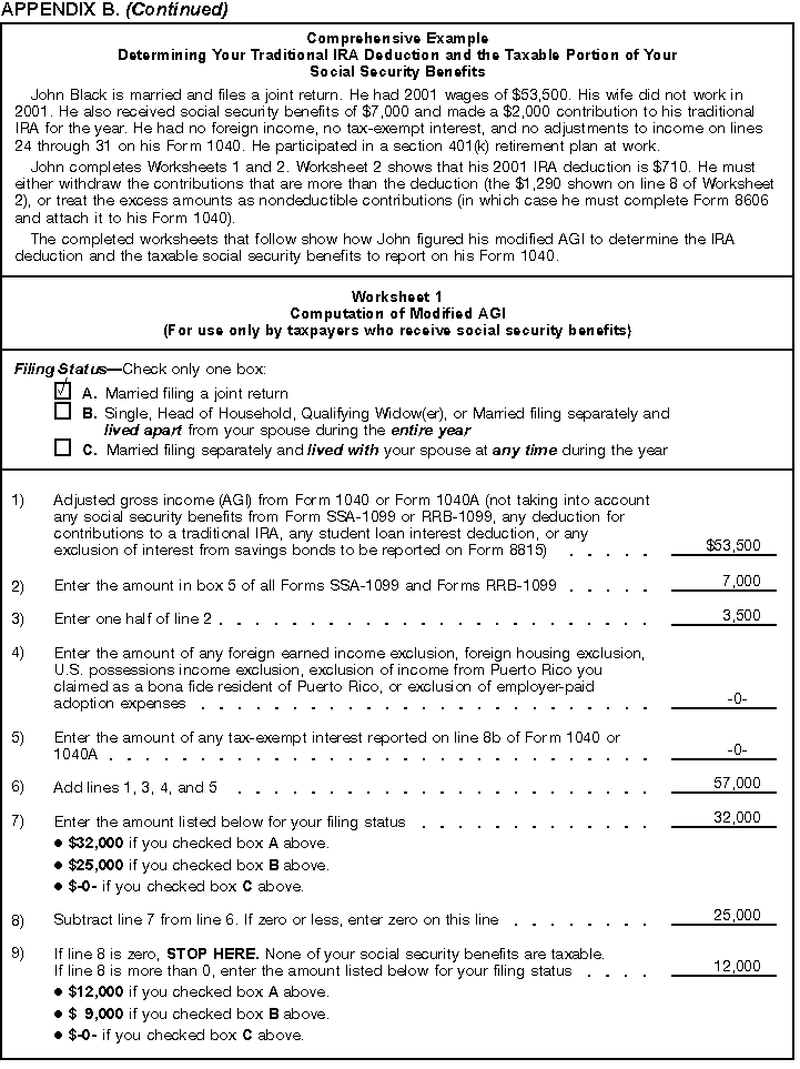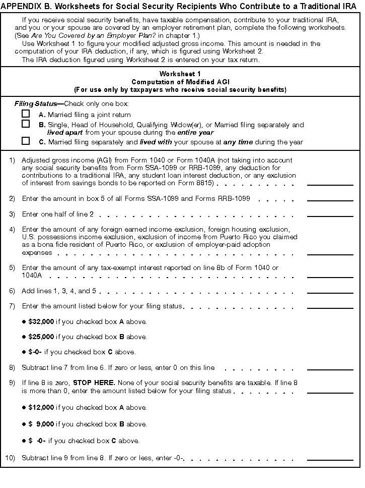 - Appendix B -- Worksheets you use if you receive social security benefits and are subject to the IRA deduction phaseout