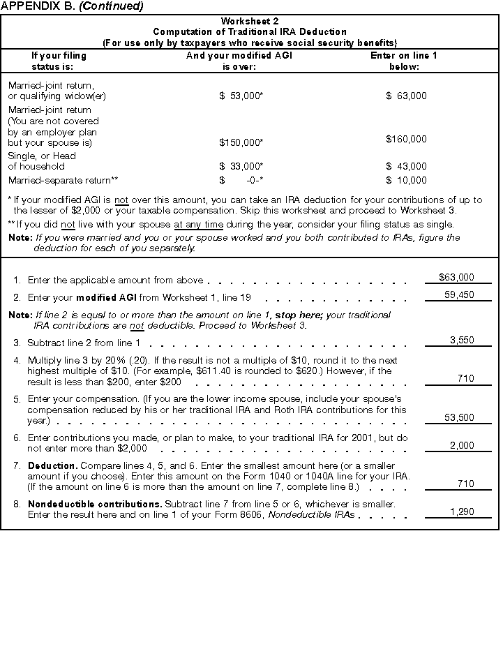 - Worksheet 2, Computation of Traditional IRA Deduction.