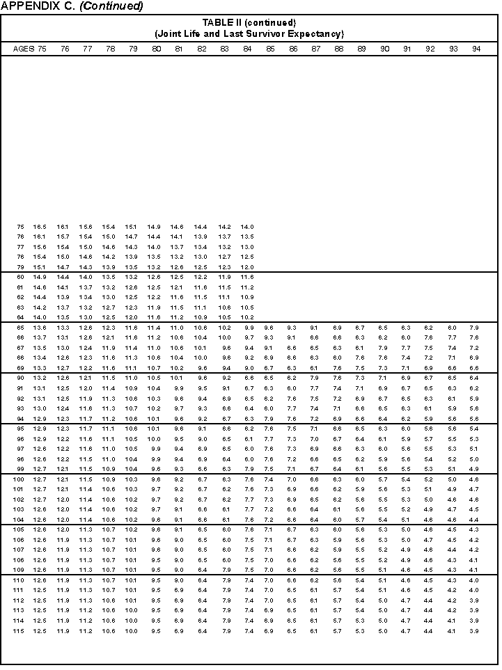 - Appendix C -- Life Expectancy and Distribution Period Tables. These tables are included to assist you in