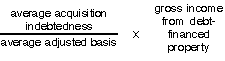 Thus, if a church or association or convention of churches acquires real property for the primary purpose of using the land in the exercise or performance of its exempt purpose, within 15 years after the time of acquisition, the property is not treated as debt-financed property as long as the organization does not abandon its intent to use the land in this manner within the 15-year period. This exception for a church or association or convention of churches does not apply to any property after the 15-year period expires. Further, this rule will apply after the first 5 years of the 15-year period only if the church or association or convention of churches establishes to the satisfaction of the IRS that use of the acquired land in furtherance of the organization's exempt purpose is reasonably certain before the 15-year period expires. If a church or association or convention of churches cannot establish after the first 5 years of the 15-year period that use of acquired land for its exempt purpose is reasonably certain within the 15-year period, but the land is in fact converted to an exempt use within the 15-year period, the land is not treated as debt-financed property for any period before the conversion. The same rule for demolition or removal of structures as discussed earlier in this chapter under Limits applies to a church or an association or a convention of churches. Computation of Debt-Financed IncomeFor each debt-financed property, the unrelated debt-financed income is a percentage (not over 100%) of the total gross income derived during a tax year from the property. This percentage is the same percentage as the average acquisition indebtedness with respect to the property for the tax year is of the property's average adjusted basis for the year (the debt/basis percentage). Thus, the formula for deriving unrelated debt-financed income is: Example. X, an exempt trade association, owns an office building that is debt-financed property. The building produced $10,000 of gross rental income last year. The average adjusted basis of the building during that year was $100,000, and the average acquisition indebtedness with respect to the building was $50,000. Accordingly, the debt/basis percentage was 50% (the ratio of $50,000 to $100,000). Therefore, the unrelated debt-financed income with respect to the building was $5,000 (50% of $10,000). Gain or loss from sale or other disposition of property. If an organization sells or otherwise disposes of debt-financed property, it must include, in computing unrelated business taxable income, a percentage (not over 100%) of any gain or loss. The percentage is that of the highest acquisition indebtedness with respect to the property during the 12-month period preceding the date of disposition, in relation to the property's average adjusted basis. The tax on this percentage of gain or loss is determined according to the usual rules for capital gains and losses. These amounts may be subject to the alternative minimum tax. (See Alternative minimum tax at the beginning of chapter 2.) Debt-financed property exchanged for subsidiary's stock. A transfer of debt-financed property by a tax-exempt organization to its wholly owned taxable subsidiary, in exchange for additional stock in the subsidiary, is not considered a gain subject to the tax on unrelated business income. Example. A tax-exempt hospital wants to build a new hospital complex to replace its present old and obsolete facility. The most desirable location for the new hospital complex is a site occupied by an apartment complex. Several years ago the hospital bought the land and apartment complex, taking title subject to a first mortgage already on the premises. For valid business reasons, the hospital proposed to exchange the land and apartment complex, subject to the mortgage on the property, for additional stock in its wholly owned subsidiary. The exchange satisfied all the requirements of section 351(a). The transfer of appreciated debt-financed property from the tax-exempt hospital to its wholly owned subsidiary in exchange for stock did not result in a gain subject to the tax on unrelated business income. Average acquisition indebtedness. This is the average amount of outstanding principal debt during the part of the tax year that the organization holds the property. Average acquisition indebtedness is computed by determining how much principal debt is outstanding on the first day in each calendar month during the tax year that the organization holds the property, adding these amounts, and dividing the sum by the number of months during the year that the organization held the property. Part of a month is treated as a full month in computing average acquisition indebtedness. Indeterminate price. If an organization acquires or improves property for an indeterminate price (that is, neither the price nor the debt is certain), the unadjusted basis and the initial acquisition indebtedness are determined as follows, unless the organization obtains the IRS's consent to use another method. The unadjusted basis is the fair market value of the property or improvement on the date of acquisition or completion of the improvement. The initial acquisition indebtedness is the fair market value of the property or improvement on the date of acquisition or completion of the improvement, less any down payment or other initial payment applied to the principal debt. Average adjusted basis. The average adjusted basis of debt-financed property is the average of the adjusted basis of the property as of the first day and as of the last day that the organization holds the property during the tax year. Determining the average adjusted basis of the debt-financed property is not affected if the organization was exempt from tax for prior tax years. The basis of the property must be adjusted properly for the entire period after the property was acquired. As an example, adjustment must be made for depreciation during all pri