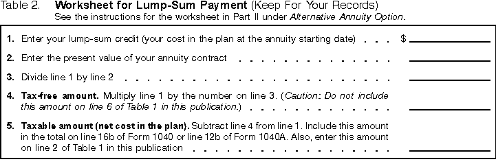 Blank Lump-sum payment worksheet
