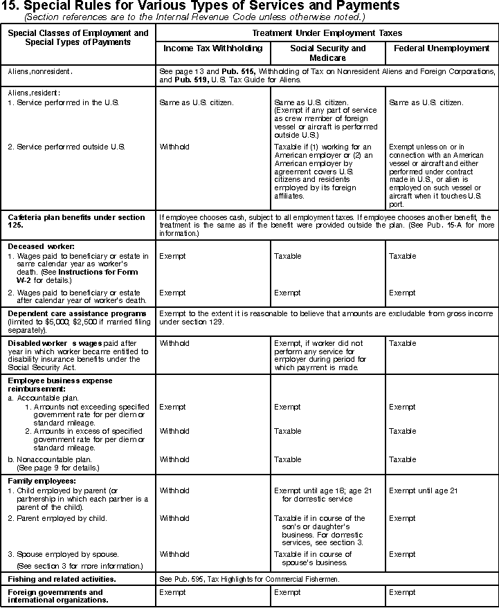 | Previous Page: 15-14. Federal Unemployment (FUTA) Tax Next Page: 15-16. How To Use the Income Tax Withholding and Advance Earned Income Credit (EIC) Payment Tables Use to find additional instances of index items. |